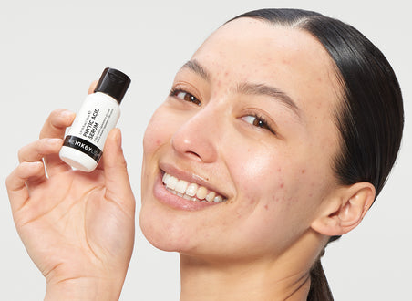 Lassen Sie uns abschließend einen großen Hautpflege-Mythos über Phytinsäure entlarven. Während sie verwendet wird, um das Erscheinungsbild offener Poren zu reduzieren, lautet die Antwort, wenn jemand speziell die Porengröße reduzieren will: Das geht leider nicht. Ihre Poren können ihre Größe nicht physisch ändern. Aber indem Sie Phytinsäure in Ihre tägliche Routine integrieren, können Sie das Erscheinungsbild großer Poren reduzieren und gleichzeitig Ihre Haut bei der Rehydrierung unterstützen und die Ölproduktion ausgleichen.